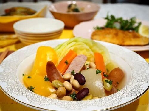 晩ご飯ブログランキング 今日はポトフ。 ゴロゴロと大きめに切った野菜をお鍋にポン!とおまかせ。 キャベツもにんじんも玉ねぎ、パプリカも、とろとろに柔らか♪ 淡い味つけで野菜の甘みを味わいました。 あじフライ、かぼちゃのチーズ焼き、 もやしと小松菜…
