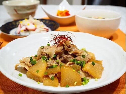 晩ご飯ブログランキング お酒もご飯にも合う、豚バラ肉と大根の炒め煮。 味の染みた大根と豚肉のこっくりとした味わいに心もホッ(*^^*) ゆずの香りもいい、タコとれんこんの甘酢あえ、 パプリカの塩きんぴらを添えて、おいしくいただきました。 ごちそうさま…