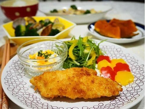 参加してます♪ 晩ご飯ブログランキング 高たんぱくで低脂肪な白身魚、たら。 透明感のある身は弾力があってしっかりしてて、見るからにきれいな切り身。 今日はフライにしました。 お手軽なタルタルソースをたっぷりつけて 大豆とソーセージのカレークリーム…