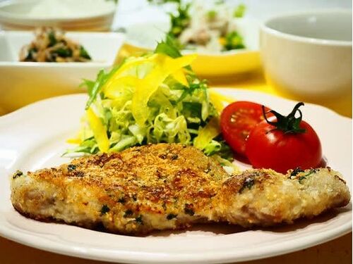 参加してます。応援お願いします♪ 家族の大好きなとんカツ。 とんカツ用豚肉はしっかりたたいてやわらかな仕上がりに♪ 衣に粉チーズとパセリを混ぜ合わせてオリーブオイルでじっくり焼きます。 表面はカリカリ!中はジューシー! ミラノ風カツレツに 菜の花…