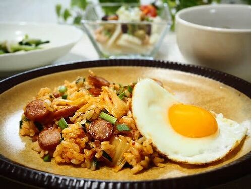 ランキングに参加してます。応援お願いします♪ 風もなく穏やかな秋の夕暮れ。 台風は大きな被害を残さないで行ってほしい。 栄養の宝庫、キムチで炒飯。 冷蔵庫の使いかけのウインナーソーセージ、ニラと炒め合わせ、 オイスターソースと少しのしょうゆで味…