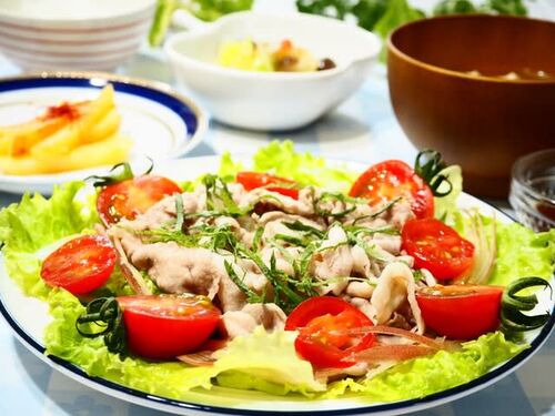 ランキングに参加してます。応援お願いします♪ お散歩道にはランタナも咲き始めました。 長い梅雨の中休みも そろそろ終わり? 夏の定番メニューの冷しゃぶを、サラダ菜、フルーツトマト、青じそ、みょうがでさっぱりと。 ごま油を加えた中華風のドレッシン…