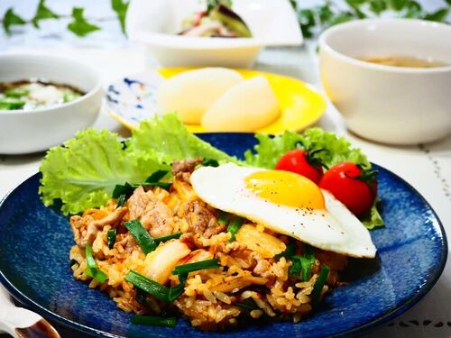 ランキングに参加してます。応援お願いします♪ 午後4時を過ぎた頃から雨、風ともに強まり、台風は福岡に上陸の予報が出ました。 慌てて冷蔵庫にあるもので晩ご飯の支度。 白菜キムチ漬けで炒飯を。 家族の好きな目玉焼きをのせたら、おいしそう^^ 2本の…