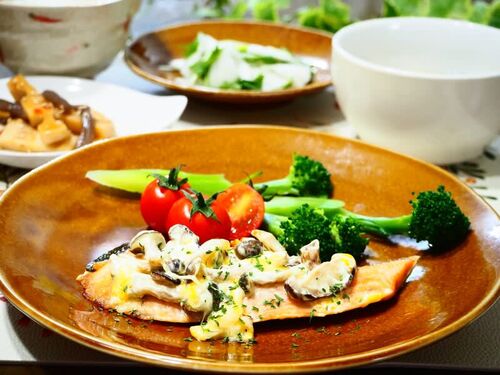 ランキングに参加してます。応援お願いします♪ 流れる雲がきれいでした。午後4時過ぎの南西の空。 今日も秋鮭を焼きました。 鮭ときのこのマヨチーズ蒸し。 とろーりとろける濃厚マヨチーズソースが絶品です! カンタン酢とレモンで手軽な酢のもの、かぶの…