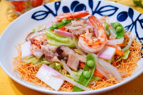 ランキングに参加してます。クリックしていただけると嬉しいです(*^_^*) 日中は24℃と初夏の陽気でした。午後6時半過ぎ、自宅より撮影。 慌ただしい休日はチャチャッと皿うどんで晩ご飯に。 春キャベツ、にんじん、新玉ねぎ、もやし、スナップえんどう、生し…
