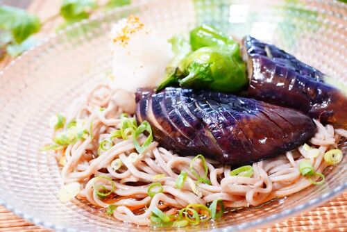 ランキングに参加してます。クリックしていただけると嬉しいです(*^_^*) 日中の気温が38℃まで上がった今日は、冷たいめん料理で晩ご飯にしました。 焼き揚げにしたなす、ししとうを大根おろしとともにそばにのせ、夏バテ防止♪ 水で割っためんつゆをかけ、大…