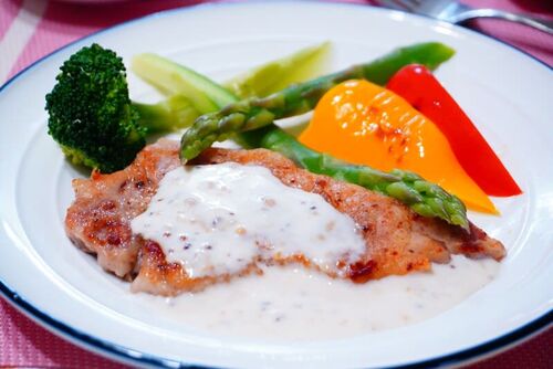 ランキングに参加してます。クリックしていただけると嬉しいです(*^_^*) ポークステーキ☆粒マスタードクリームソース。 肉にはしっかり焼き色をつけて。 ふたや皿をのせて焼くと、切り込みを入れなくても肉がそりません。 牛乳+粒マスタード+スライスチー…