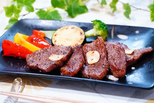 ランキングに参加してます。クリックしていただけると嬉しいです(*^^*) 今日は、ガツン!とシンプル焼き肉。 宮崎県産の黒毛和牛がお買い得になっていてニコニコと買いました^^ ニンニクの香りを移したオイルで焼き、塩、粗びき黒こしょうをふってシンプル…