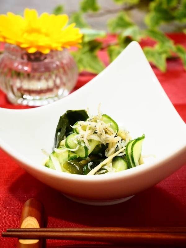 かぼちゃと金時豆の煮もの、きゅうりとチリメンジャコの酢の物を副菜にいただきました。