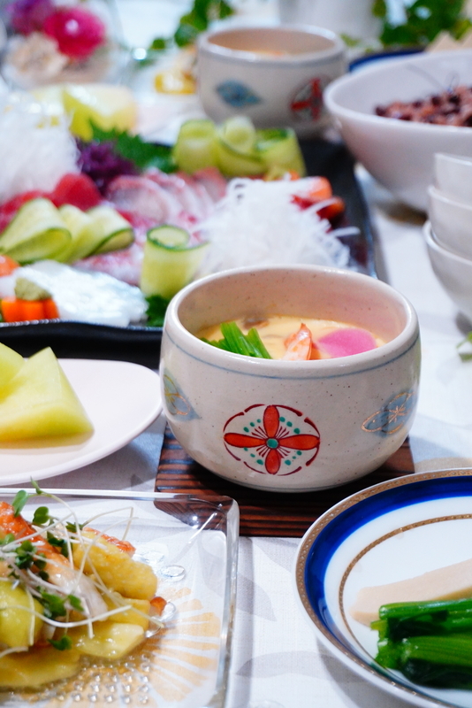 リクエストのお刺身と茶碗蒸しを添えて。