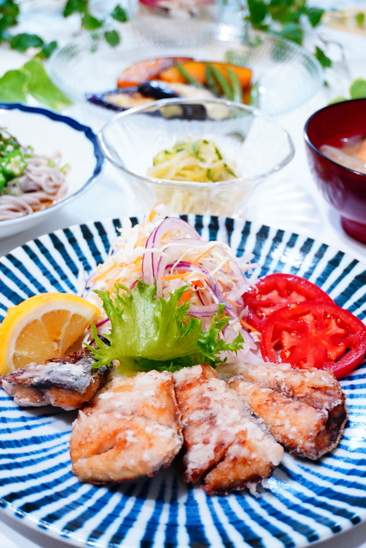 汁けを拭いて、片栗粉をまぶし、高めの中温に熱した揚げ油でカラリとあげると