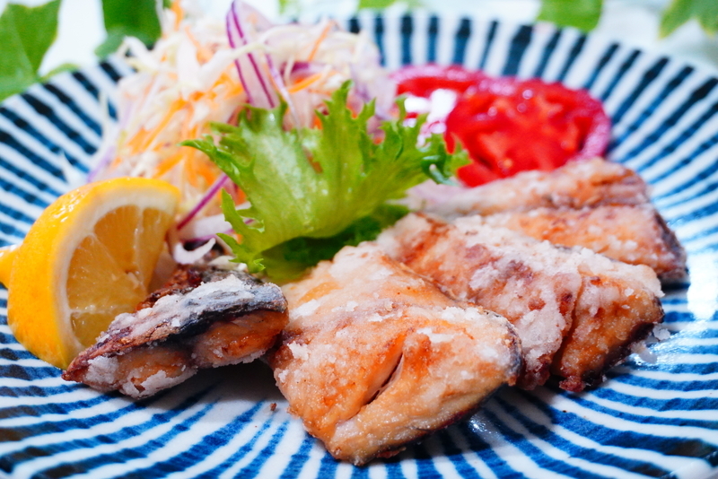 しょうゆ、酒、みりん、しょうが汁にしばらく浸し、下味をつけました。
