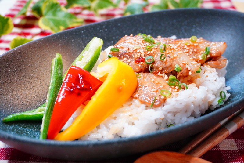2 あたたかいごはんにタレごと肉をのせ、万能ねぎを散らしていただきました。
