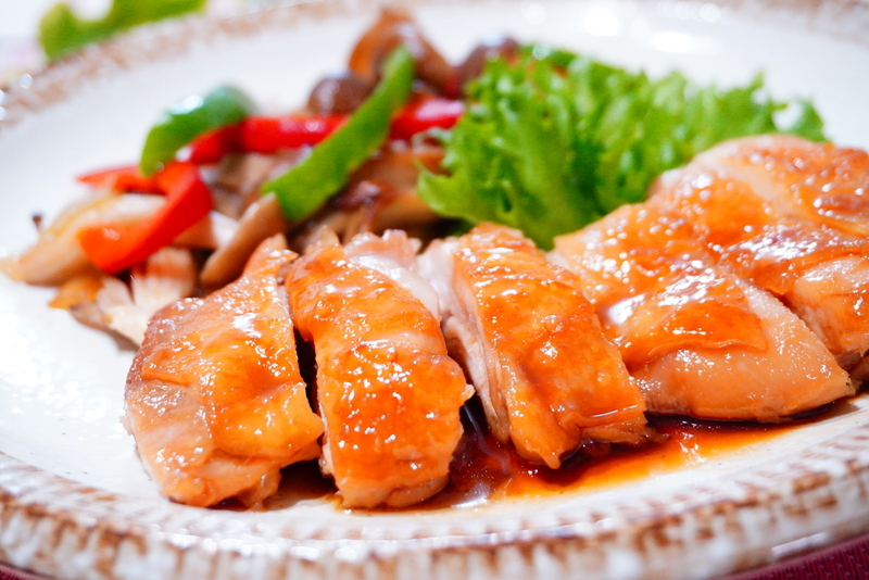 しっかり焼きつけた鶏肉に甘辛いたれをからめたら、お箸がとまりません^^